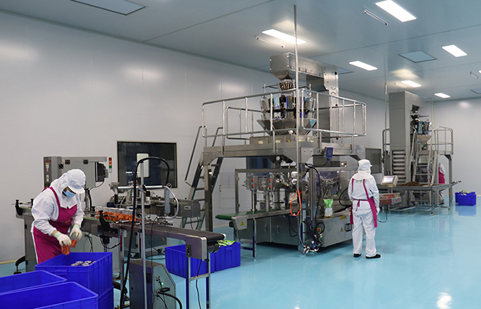 公司用巴氏殺菌技術(shù)來清理原材料,確保食材的衛(wèi)生。嚴(yán)格遵照GMP標(biāo)準(zhǔn),建造十萬級無塵凈化車間,每小時(shí)18次內(nèi)部空氣循環(huán),并配備風(fēng)淋室、除塵室等人員清潔室,對每一位進(jìn)入車間的人員進(jìn)行消毒、除塵,保證車間內(nèi)的潔凈程度。